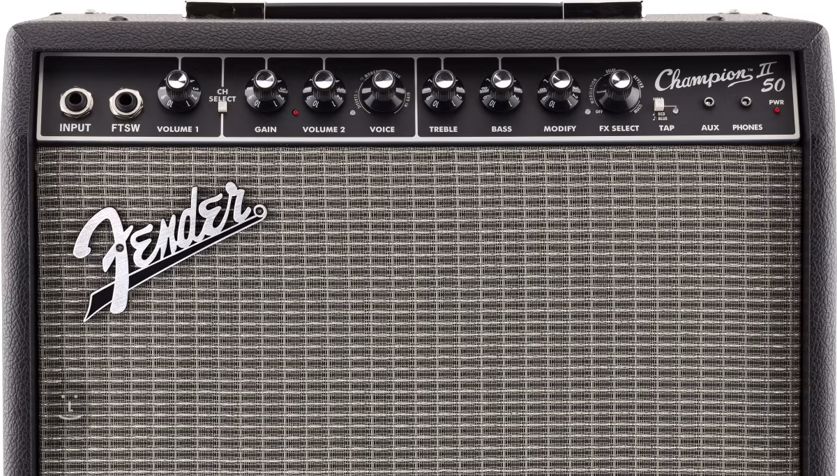 Kytarové tranzistorové kombo Fender CHAMPION II 50 představuje ideální volbu aparátu na zkoušení nebo vystupování s kapelou pro začínající kytaristky a kytaristy. Jedná se o dvoukanálové kombo s výkonem 50W a volitelným nastavením zvuku/voicingem druhého kanálu, které vám nabídne jak čisté tóny, tak i rockovější overdrive a metalové distortion zkreslení. Jednoduše od jazzu, country a blues po rock a metal.
